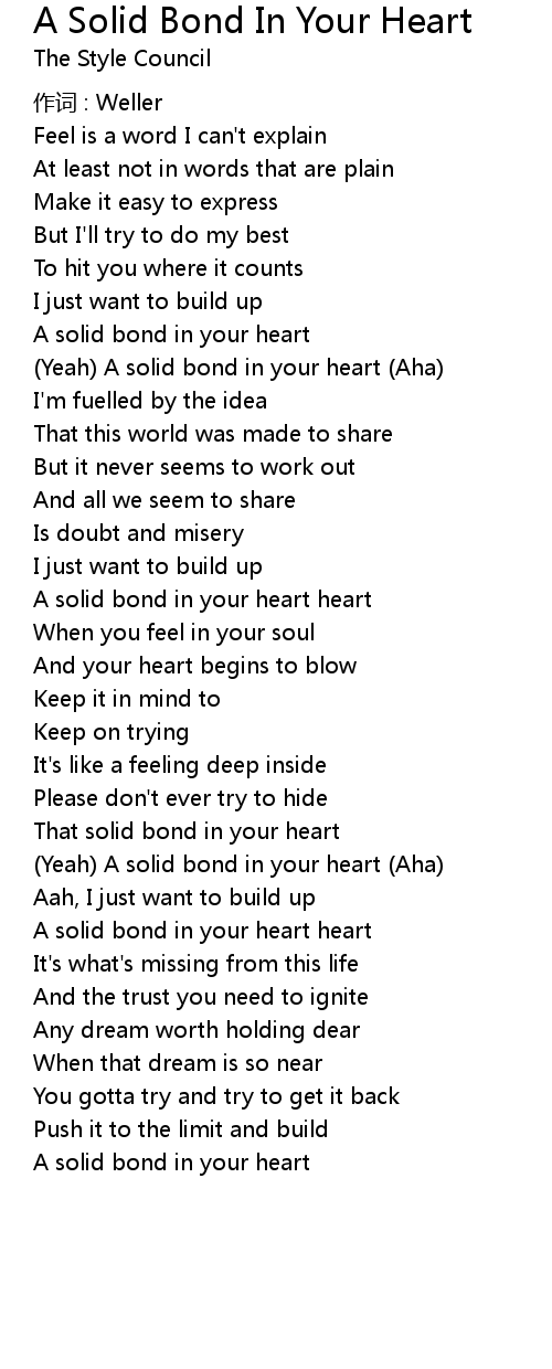 | Yeah A solid bond in your heart Aha | |