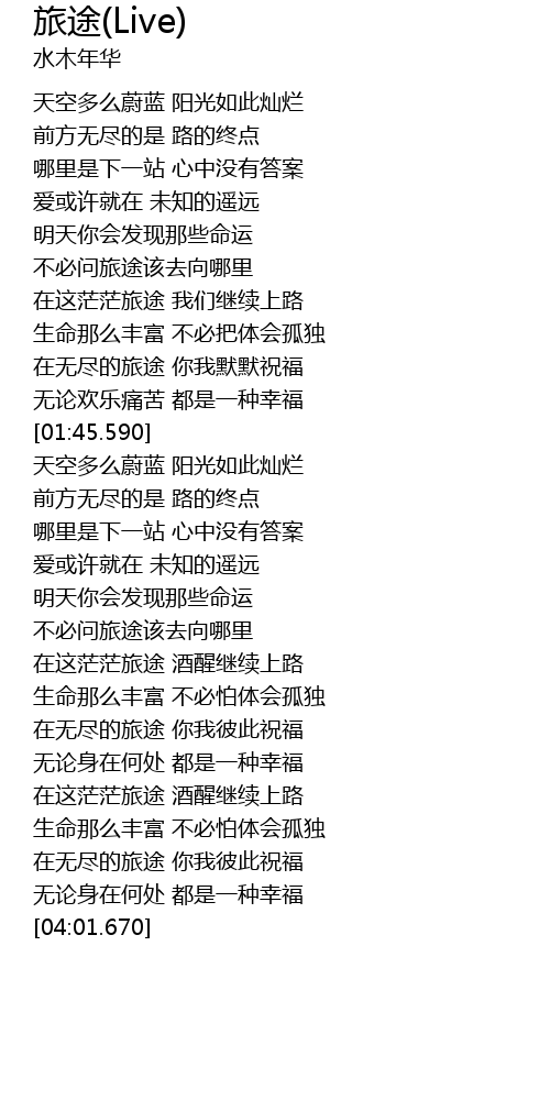 | [01:34.500] | 在无尽的旅途 你我默默祝福 |