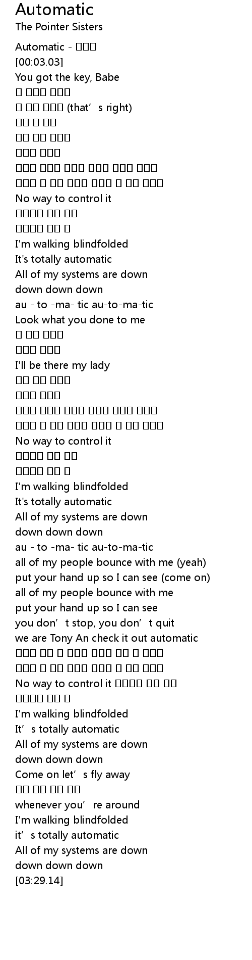 | [02:10.42] | au - to -ma- tic au-to-ma-tic |