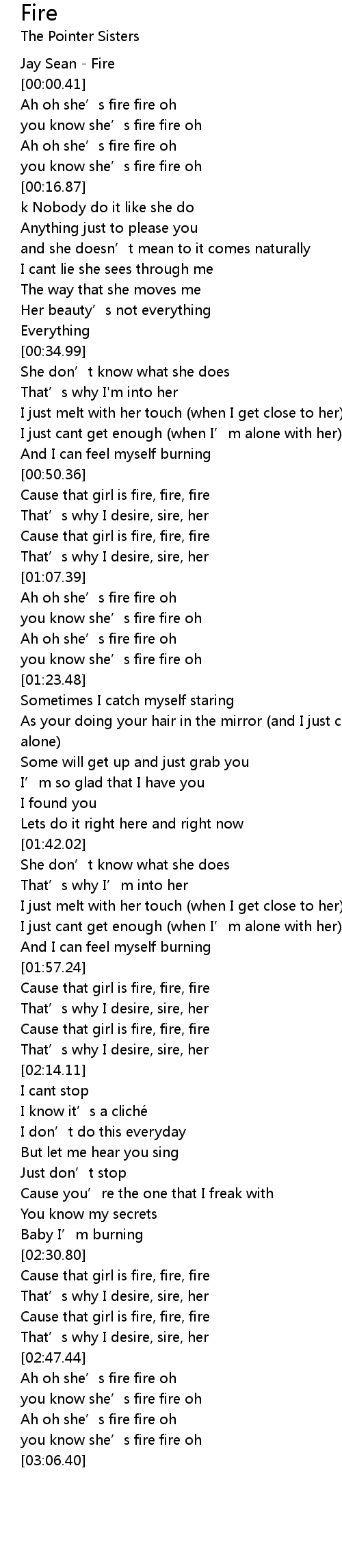 | [02:59.77] | you know she' s fire fire oh |