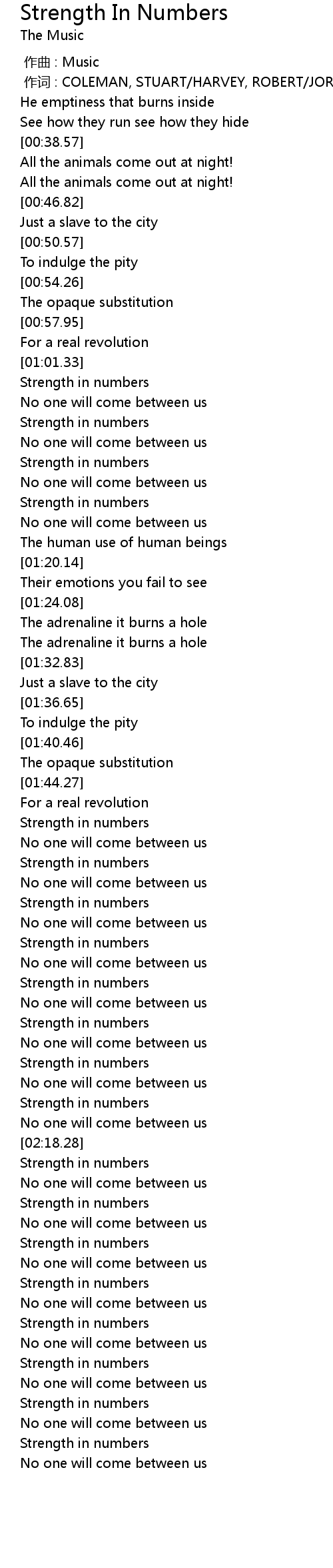 | [00:01.00] | 作词 : COLEMAN, STUART/HARVEY, ROBERT/JORDAN, PHILIP/NUTTER, ADAM |