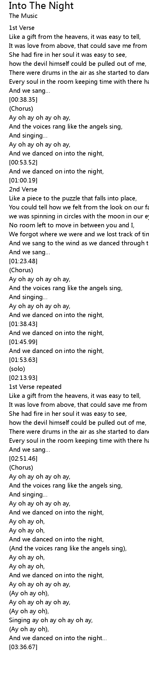 | [01:18.43] | And we sang to the wind as we danced through the night, |