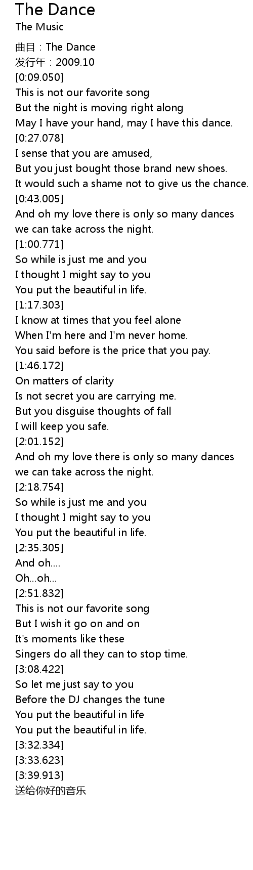 | [0:04.952] | 曲目:The Dance |