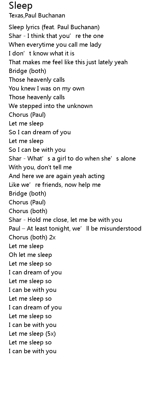 | Sleep lyrics (feat. Paul Buchanan) | |