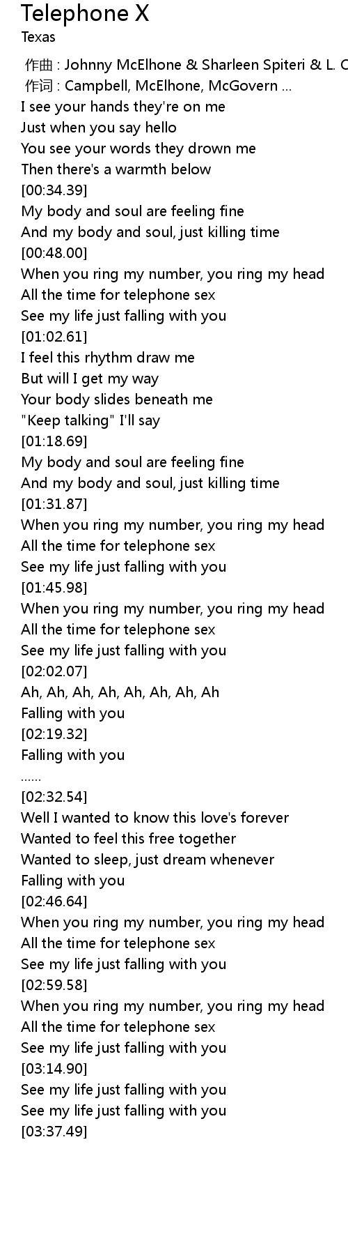 | [00:53.76] | All the time for telephone sex |