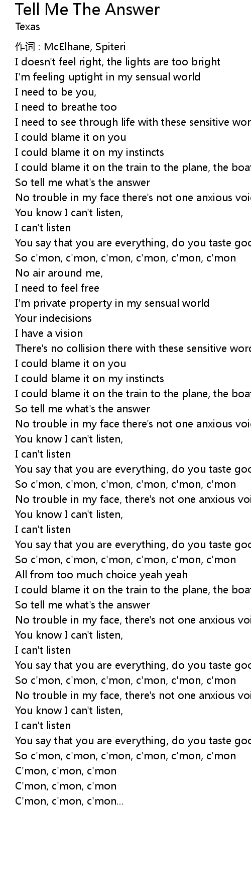 | So tell me what' s the answer | |