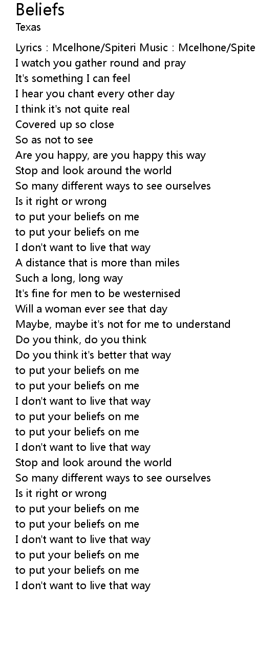 | to put your beliefs on me | |
