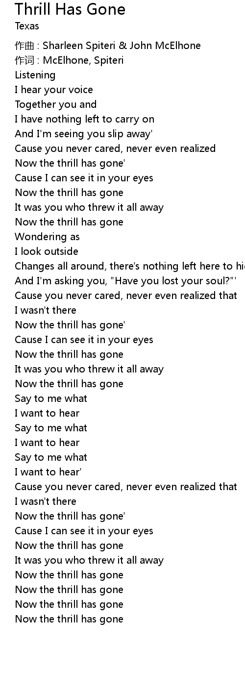 | Now the thrill has gone | |