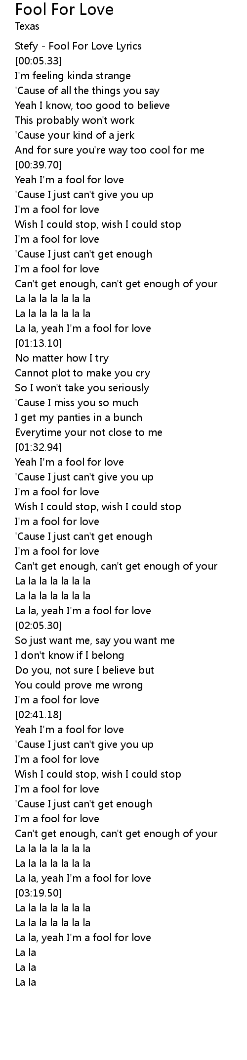 | [00:03.29] | Stefy - Fool For Love Lyrics |