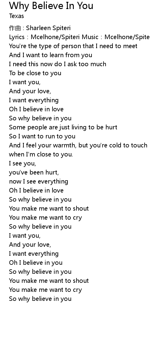 | 歌曲 | Why Believe In You |