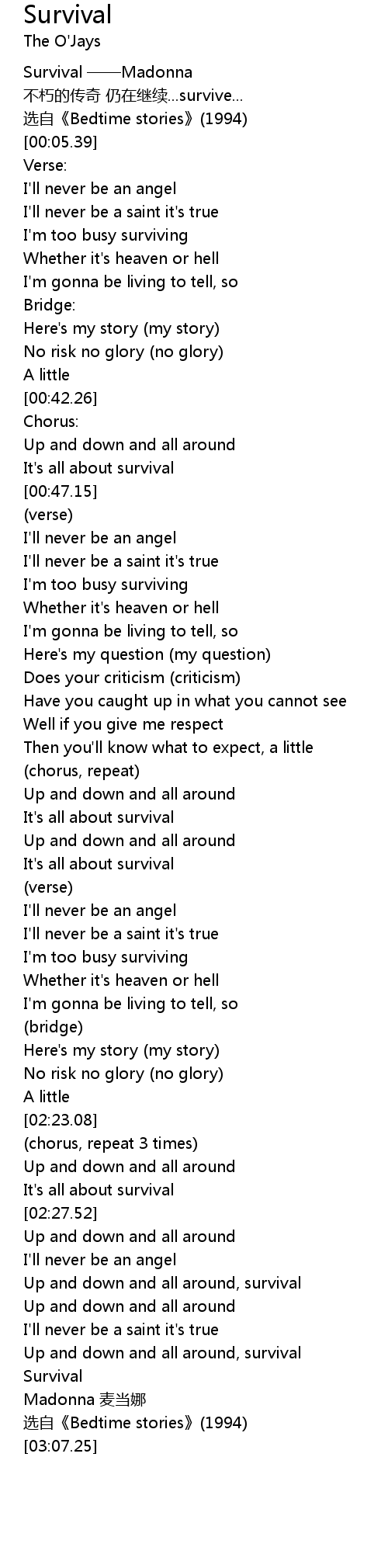 | [00:01.98] | Survival ——Madonna |