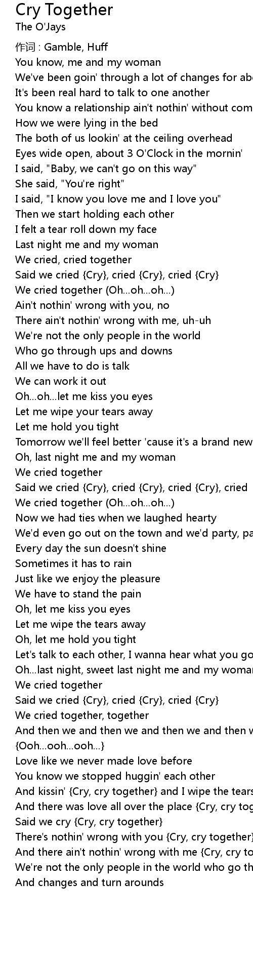 | Said we cry {Cry, cry together} | |