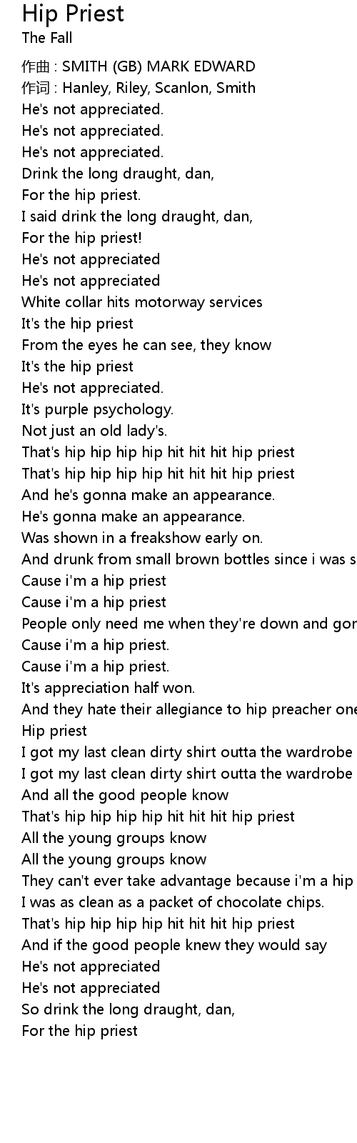 | That' s hip hip hip hip hit hit hit hip priest | |