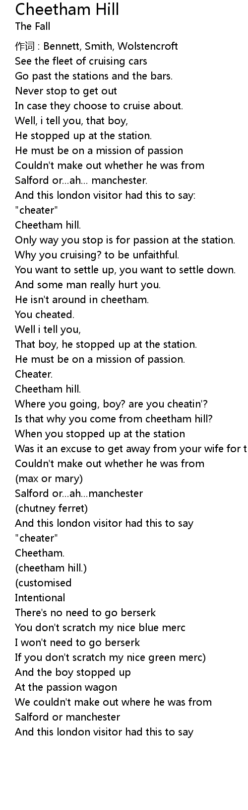 | 作词 : Bennett, Smith, Wolstencroft | |