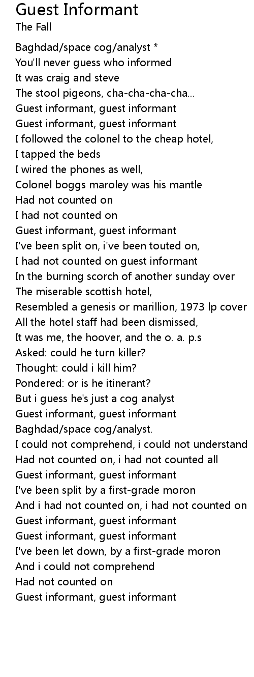 I had not counted on guest informant |