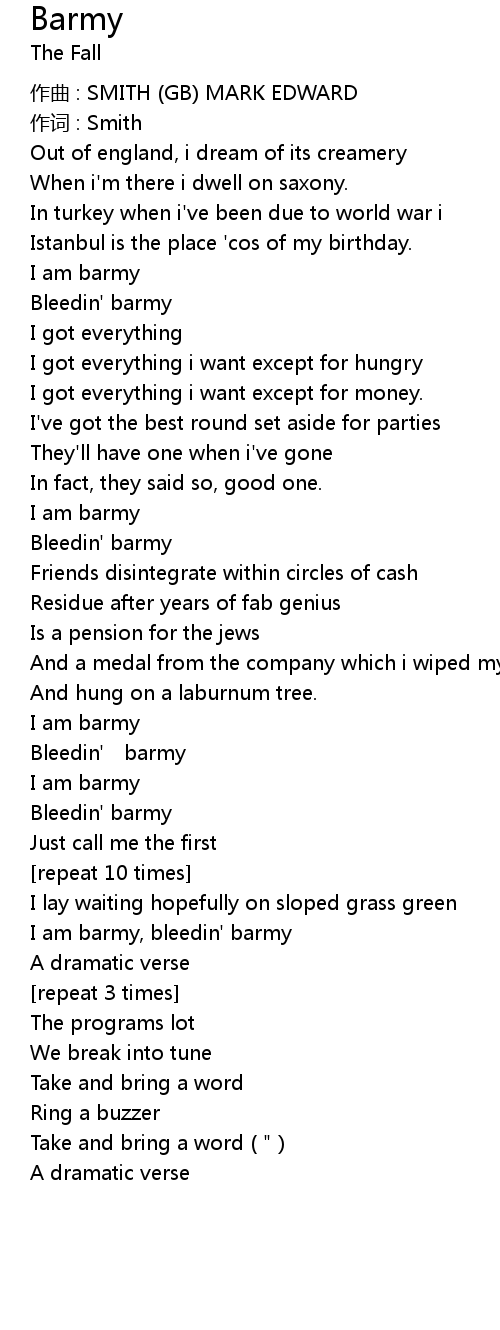 | 歌曲 | Barmy |