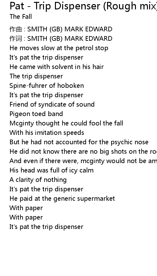 | 歌曲 | Pat - Trip Dispenser (Rough mix) |