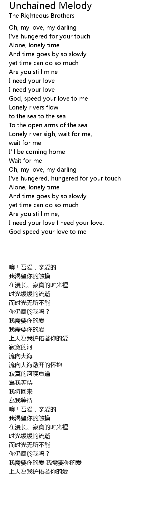 Unchained Melody 歌词
