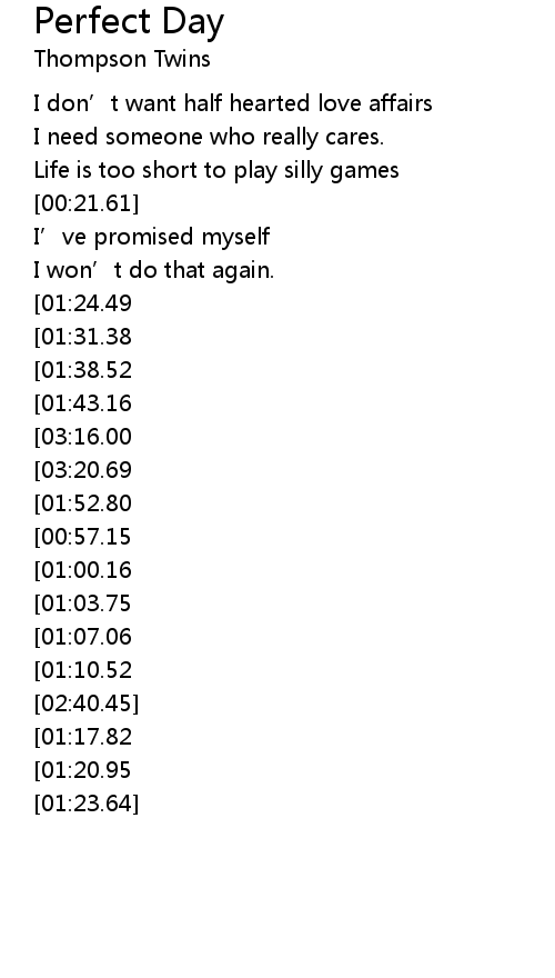 | [02:47.58][01:24.49][00:28.46] | It' s got to be perfect |