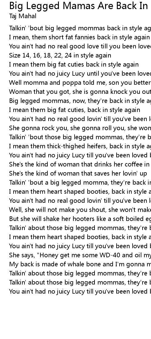 Talkin' 'bout big legged mommas back in style again |