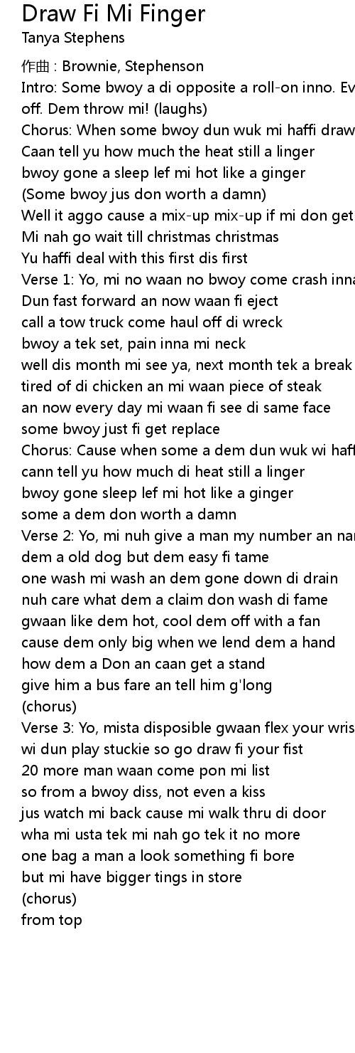 | Chorus: When some bwoy dun wuk mi haffi draw fi mi finger | |