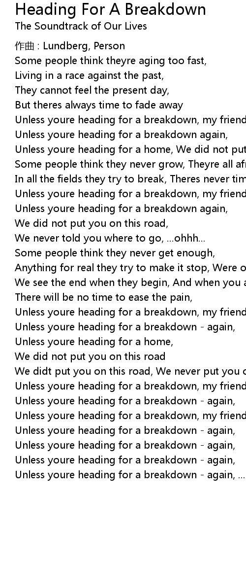 | Unless youre heading for a breakdown again, ... uiooohhh... |