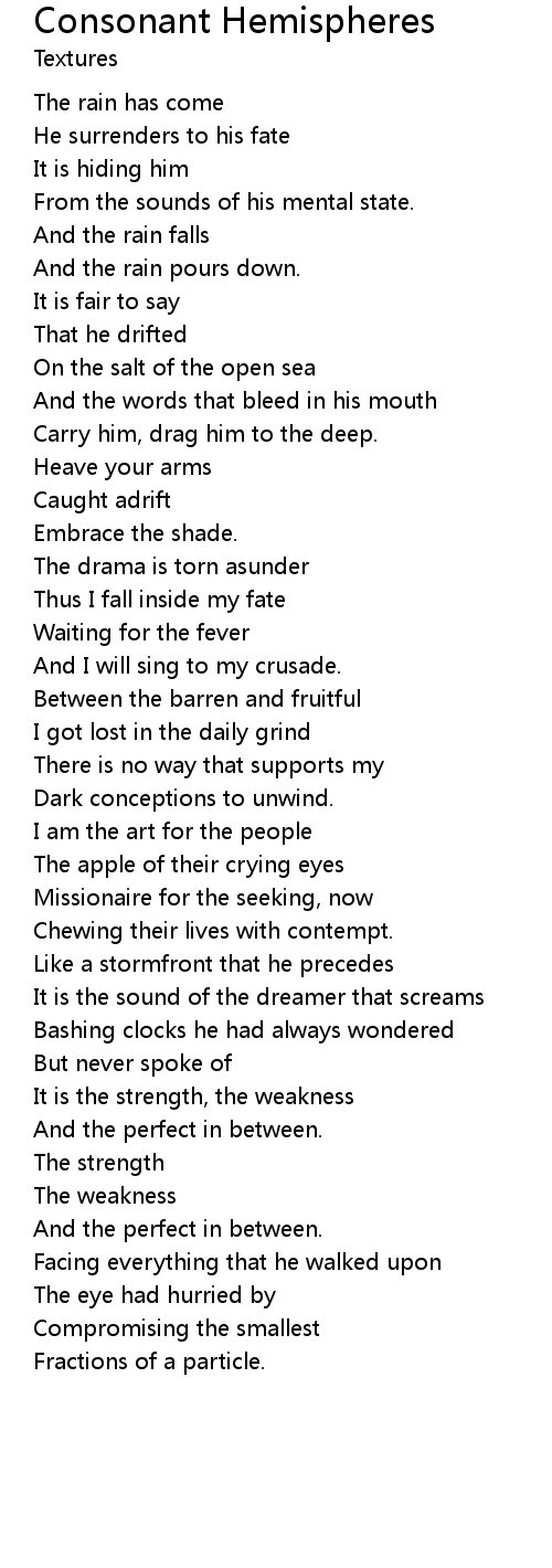 | And the words that bleed in his mouth | |