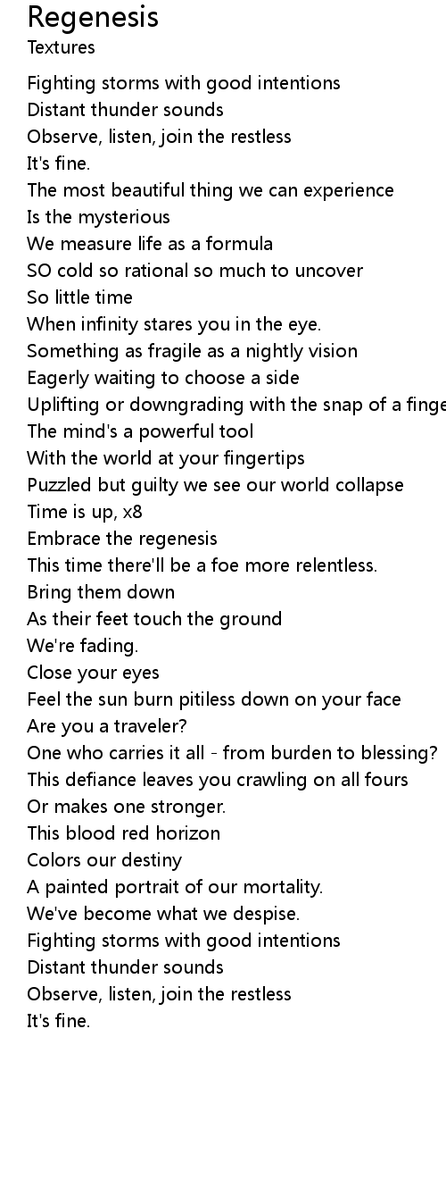 Embrace the regenesis |