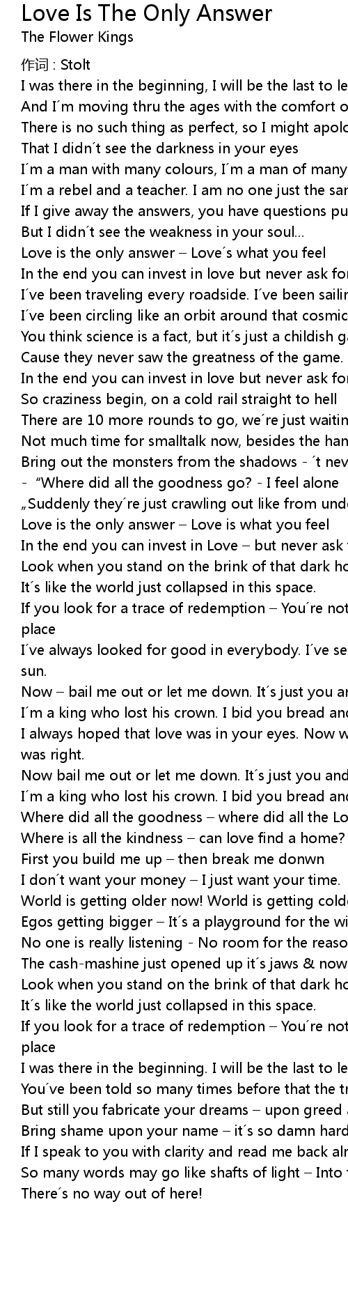 | 歌曲 | Love Is The Only Answer |