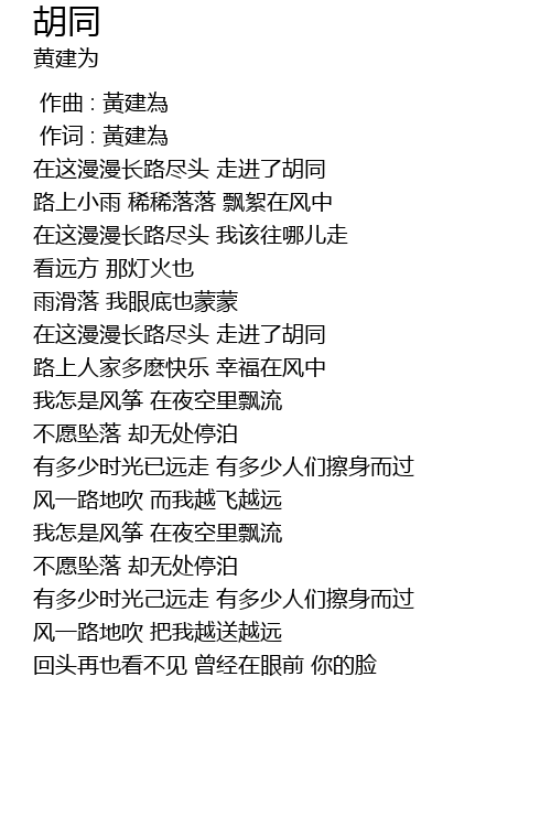 | [00:54.33] | 在这漫漫长路尽头 走进了胡同 |