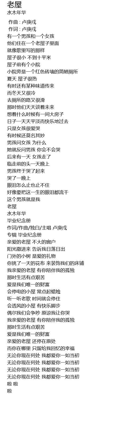 | [03:09.21] | 亲爱的老屋 还停在原处 |
