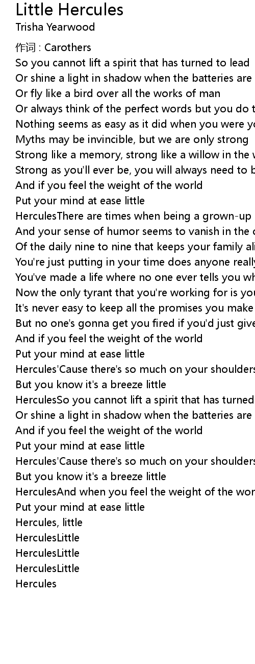 | HerculesSo you cannot lift a spirit that has turned to lead | |