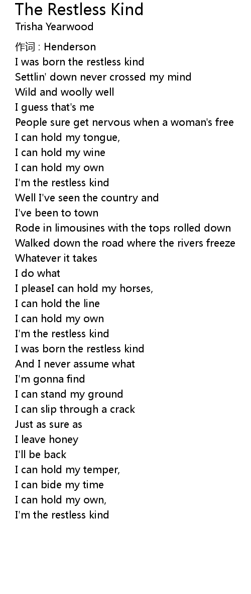 | I' m the restless kind | |