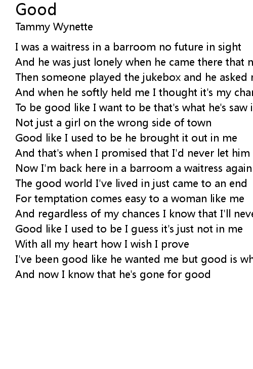 I've been good like he wanted me but good is what I'll never be