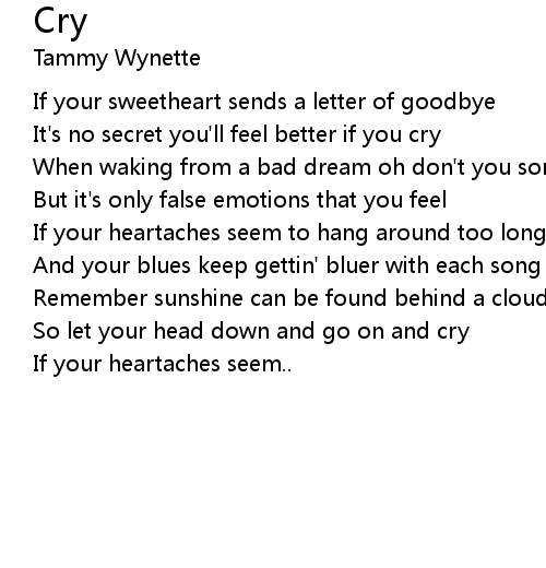 | It's no secret you'll feel better if you cry | |