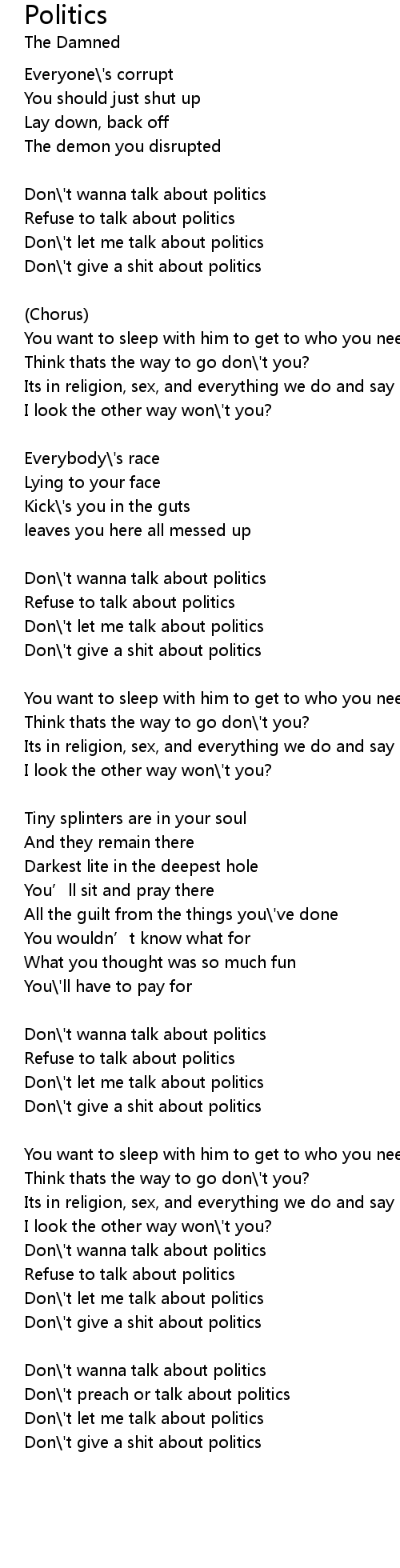 | Don\'t wanna talk about politics | |