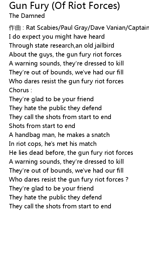 | 歌曲 | Gun Fury (Of Riot Forces) |