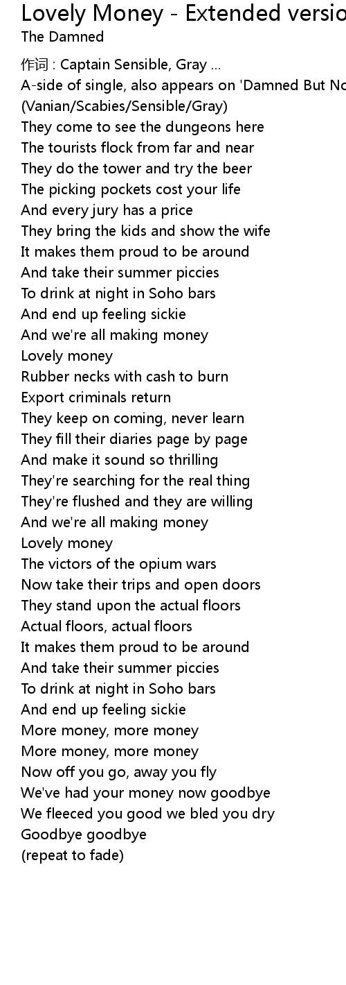 | 歌曲 | Lovely Money - Extended version - Bonus track |