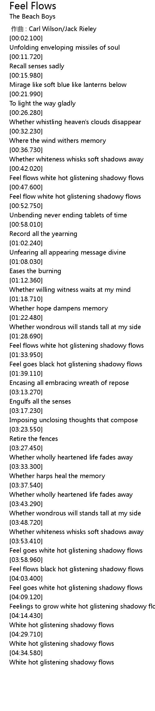 | [03:55.350] | Feel goes white hot glistening shadowy flows |