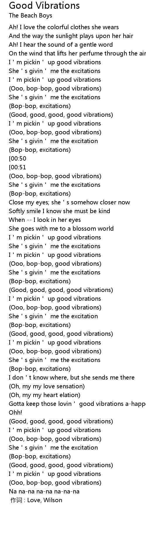 | [01:22] | I'm pickin' up good vibrations |
