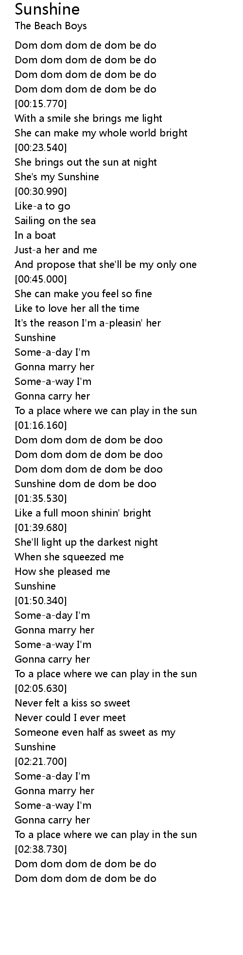 [01:32.350] Sunshine dom de dom be doo