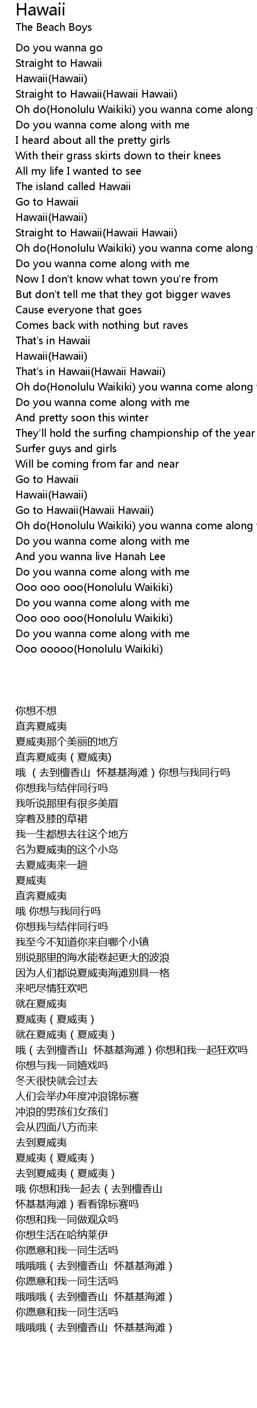 Oh do(Honolulu Waikiki) you wanna come along with me |
