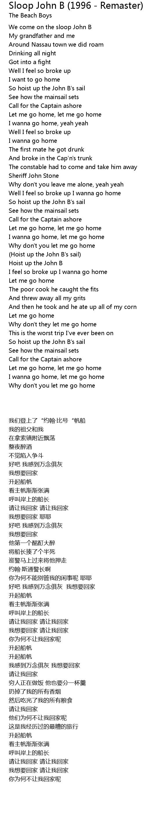 Well I feel so broke up I wanna go home |
