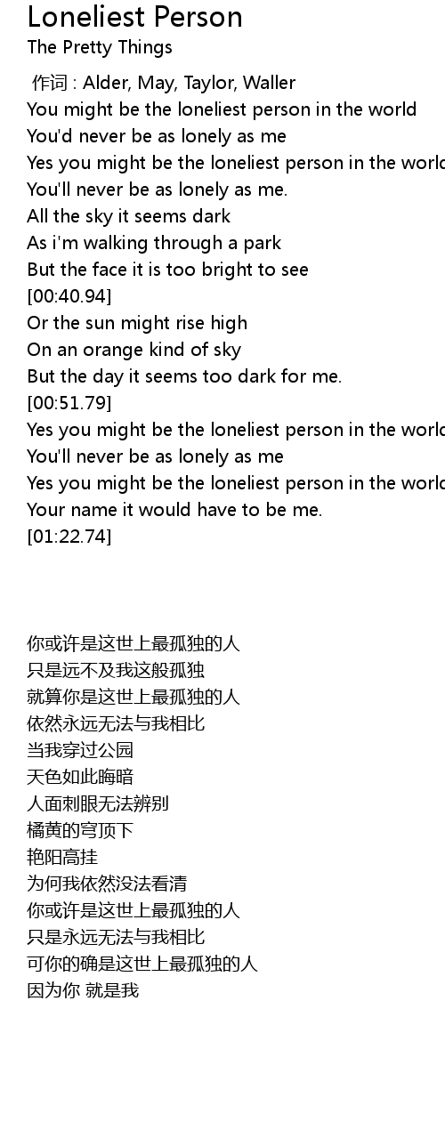 | [00:53.34] | Yes you might be the loneliest person in the world |