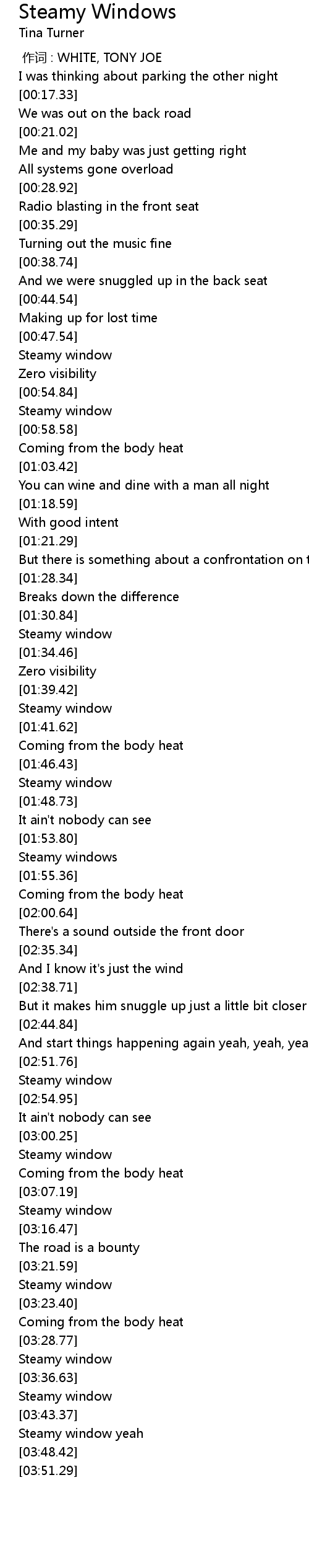 | [03:35.44] | Steamy window |