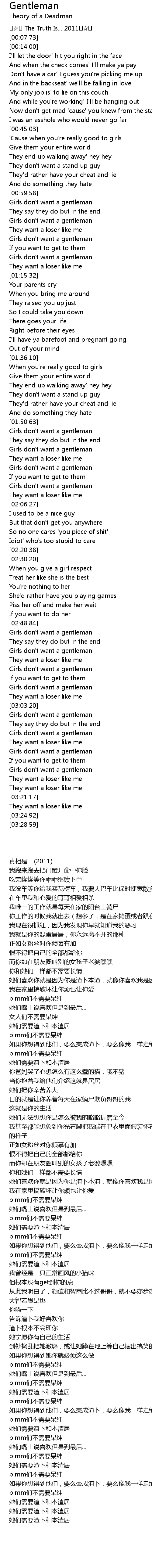 | [00:54.64] | 她们喜欢你就是因为你是渣卜本渣,就像你喜欢我是因为我调皮捣蛋一样 |