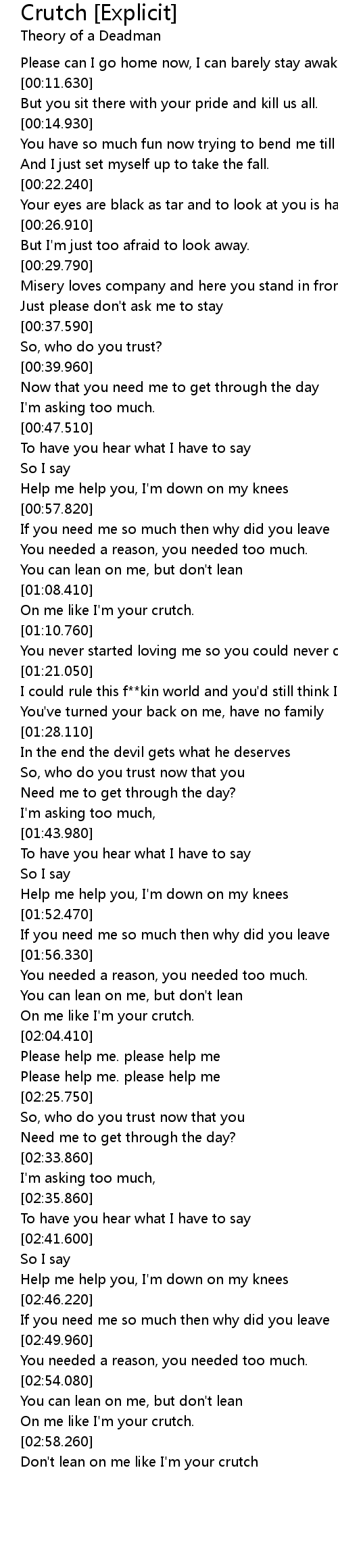 Don't lean on me like I'm your crutch |