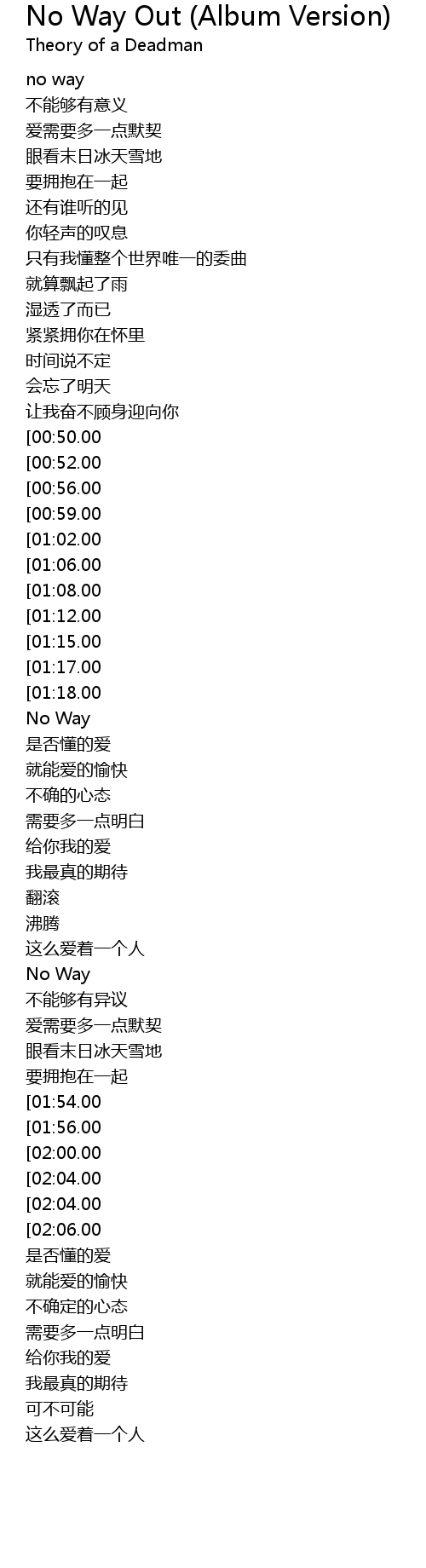 | [02:26.00][00:50.00] | No Way |