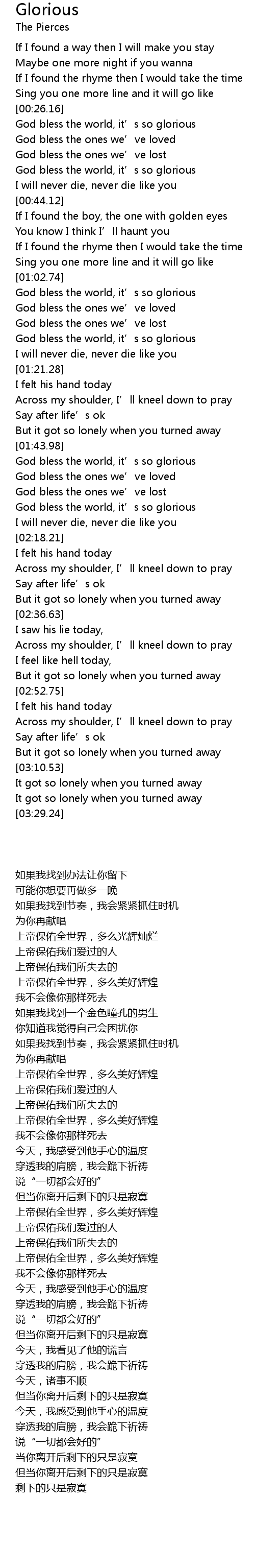 | [00:34.59] | 上帝保佑全世界,多么美好辉煌 |