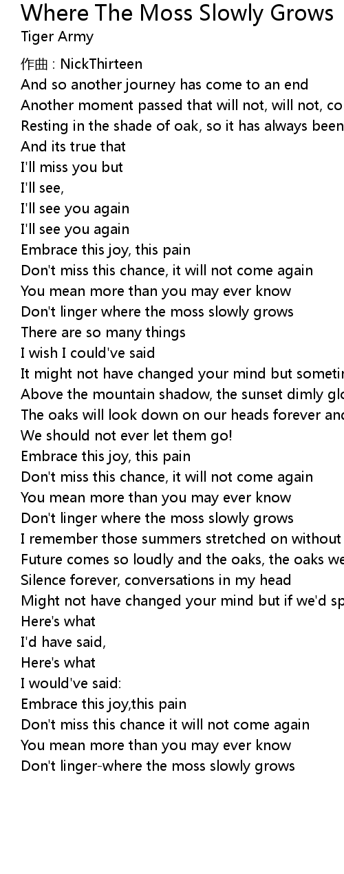 | 歌曲 | Where The Moss Slowly Grows |
